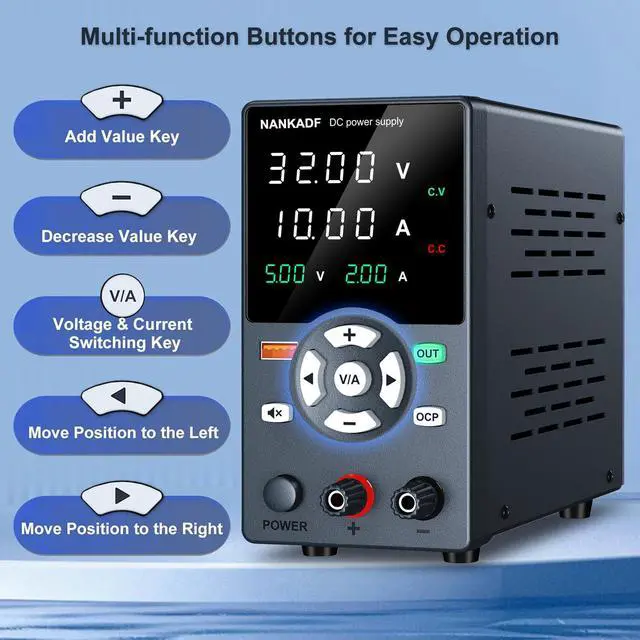This benchtop power supply lets equipped with multifunctional adjustment buttons let you set the parameters directly without repeated adjustments. One button trigger without waiting. Make your operation more precise and convenient