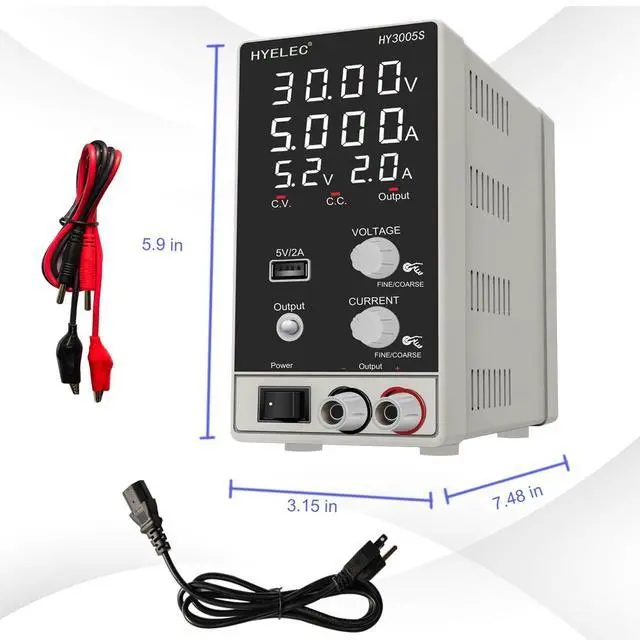 1. 4 digit high precision LED display 2. 5V2A USB Output interface 3. Current limiting , short circuit protection , over temperature and overload protection 4. The dc power supply with output switch control button 5. lightweight and easy to carry 6. wide range of application such as school lab experiments, cell phone repairing and troubleshooting, electronic production ensuring specifications, and laboratory measurements etc.