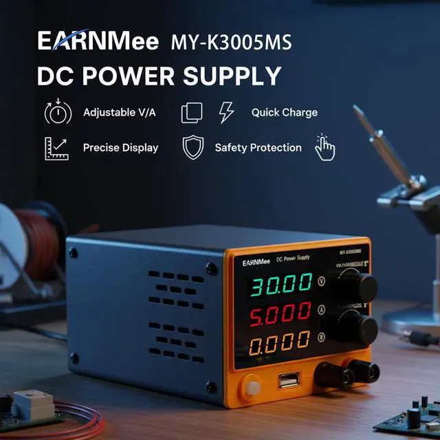 =1 % ripple, full protection kit, test leads included—ready out of the box.Scene: Freshman lab: linear-amp project on Monday, LiFePO4 charger on Wednesday, senior-year motor controller on Friday. Overload LED teaches current limits before magic smoke appears; black/red binding posts accept banana, fork, or bare wire—one supply graduates with you.