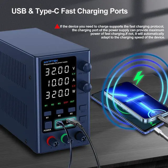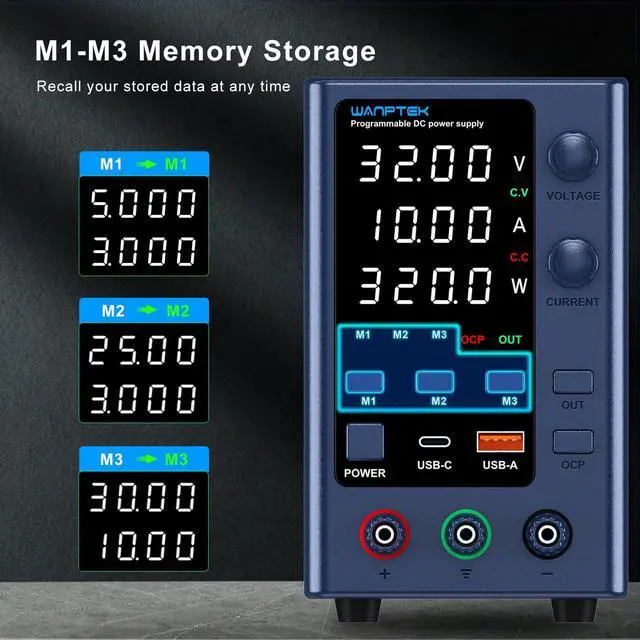 WANPTEK POWER Variable Dc Power Supply with Memory Preset/OCP/OUTPUT/USB-A/USB-C Port