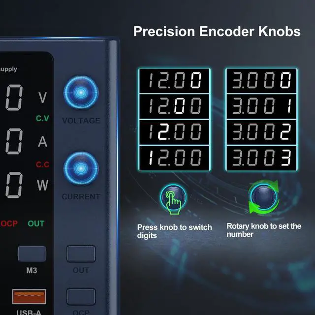 Forget the clumsy dials and squinting guesswork of yore! This variable power supply boasts an encoder knob, a precision instrument granting dominion over every amp and volt. With a gentle press and a twist, you summon the exact power your project craves