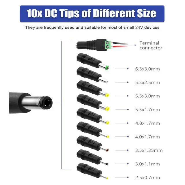1x 24V 3A ac/dc power supply adapter; 10 x DC Tips