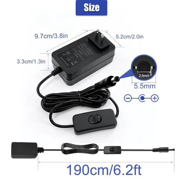 Output DC connector:5.5mm x 2.5mm (inside"+", outside"-")
