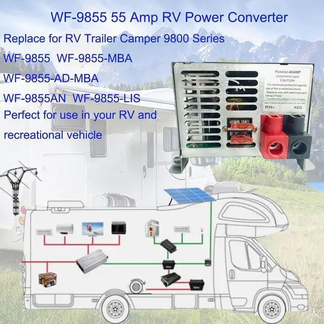 WF-9855 55 Amp RV Power Converter, Replace for RV Trailer Camper 9800 Series. such as WF-9855, WF-9855-MBA,WF-9855-AD-MBA,WF-9855AN WF-9855-LIS etc.Perfect for use in your RV and recreational vehicle