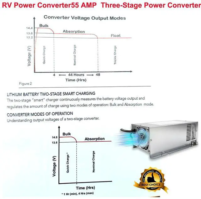 9855 55 Amp RV Power Converter is made of the best material from the factory and the silent fan is the latest upgrade, very quiet. The RV converter will not interfere with other signals such as TV and radio. Electronic current limiting function will automatically turn off the power in case of overload or short circuit.Over-voltage protection, over-current protection, high-temperature protection, short-circuit protection. We believe this is the last time you will have to replace your RV converter