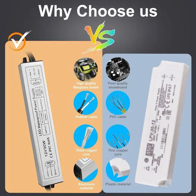 Suitable for LED light strip; Security camera; Computer project; Outdoor lamp; Interior lamps; Industrial use; LED display lights and any other 12V DC LED lights