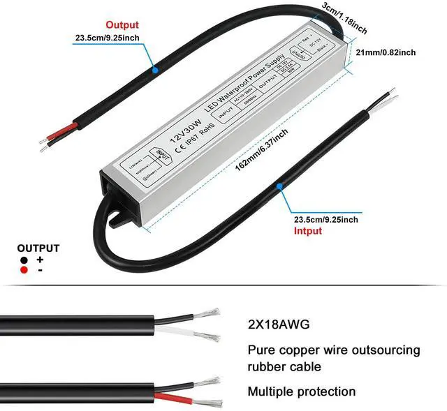 12V 2.5A 30W Waterproof Power Supply Suitable for 12V LED projects, computer projects, outdoor use,LED strip lights