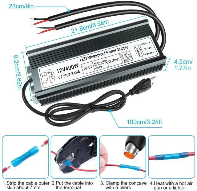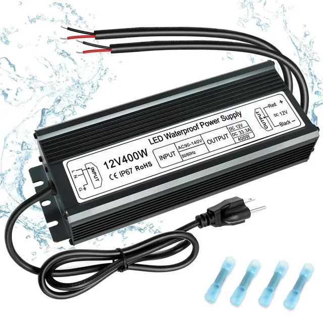 12V 400W Waterproof DC Led Power Supply Suitable for 12V LED projects, computer projects, outdoor use,LED strip lights