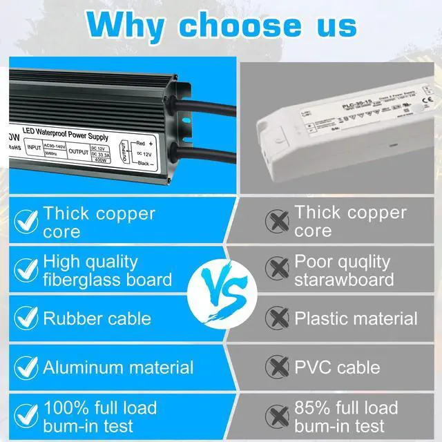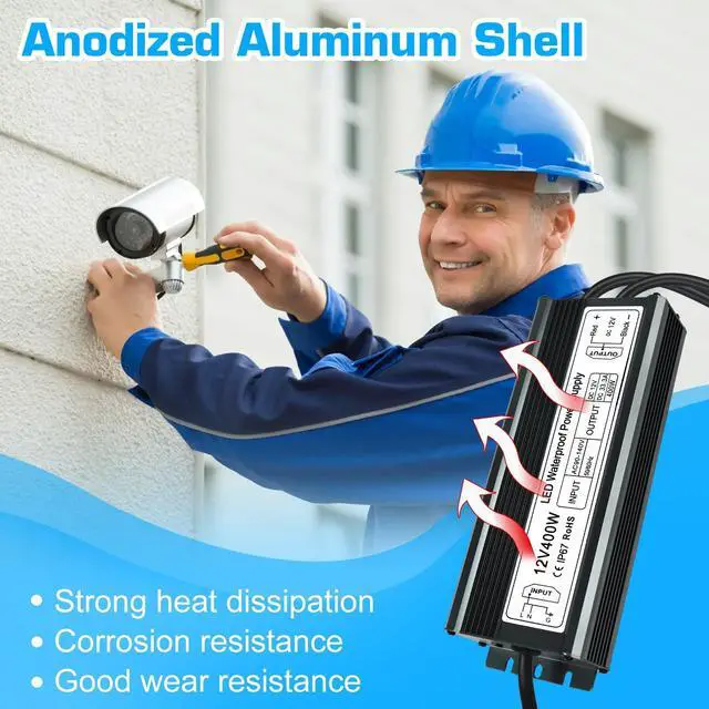 inShareplus 12V 33.33A 400W dc waterproof power supply is constant voltage power supply; Compatible with LED light bars, surveillance cameras, LED display lights; Indoor and outdoor lamps; Advertising signs; Wireless routing; Switch, etc