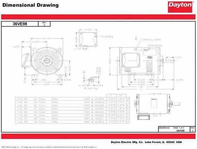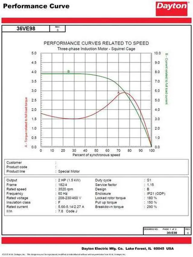 General Purpose Motor, Three-Phase, Open Drip Proof Motor Enclosure Design, 2 HP, Nameplate RPM 3520, Frame 182/4, Voltage 230/460V AC, 60 Hz Hz, Three Phase, Full Load Amps 5.1 / 2.2 A, Rigid Base Motor Mounting Type, Motor Thermal Protection None, Ins. Class F, Motor Service Factor 1.15, Ball Motor Bearings, Motor Frame Material Steel, Max. Ambient Temp. 40 Degrees C, CW/CCW Motor Shaft Rotation, Nominal Efficiency 85.5 Percent, Continuous Duty, 3001-3600, CE, CSA, UL, Includes Conduit Box.