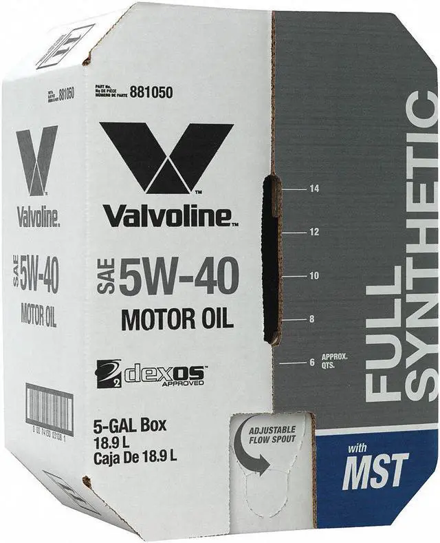 Engine Oil, Base Oil Full Synthetic, Size 5 gal, Container Type Box, SAE Grade 5W-40, Viscosity Index 168, Series Synpower (R), Color Amber, Temp. Range -24 Degrees to 390 Degrees F, Pour Point -36 Degrees C, Flash Point 390 Degrees F, Viscosity @ 40C 82, Viscosity @ 100C 13, Application Cars and Light Trucks, For Use With Automotive Engines, Standards All Products Meet API And SAE Standards