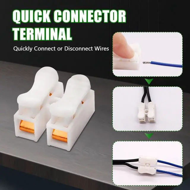 Quick Connector Terminal,Quickly Connect or Disconnect Wires,Each pieces has 2 channels,No tools or splice crimps needed