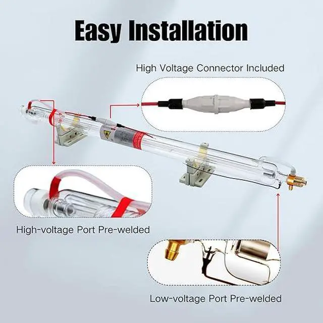 Easy Install & Operation: The positive and negative pole of laser tube have been welded and sealed in advance. The high and low voltage port have been connected by the high voltage connector. It can simplify the installation process and save your time.