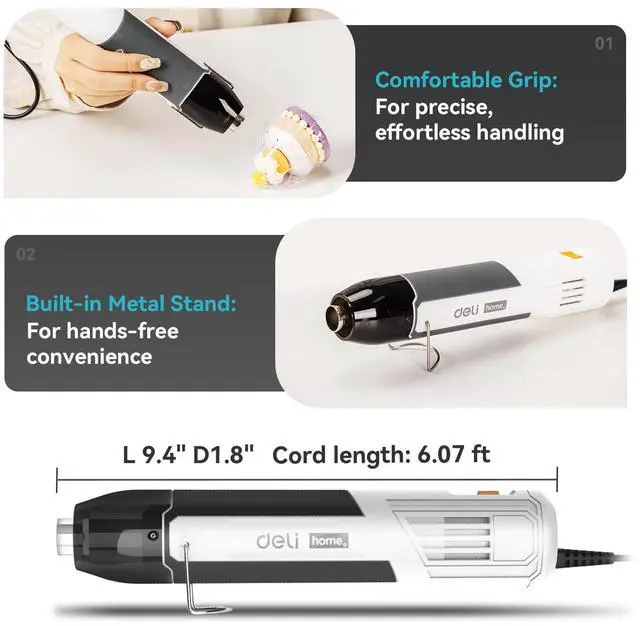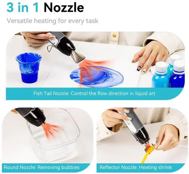 Versatile Nozzles Included: Comes with 2 replacement nozzles for shrink wrapping, crafting, DIY projects, and more, ensuring professional results every time
