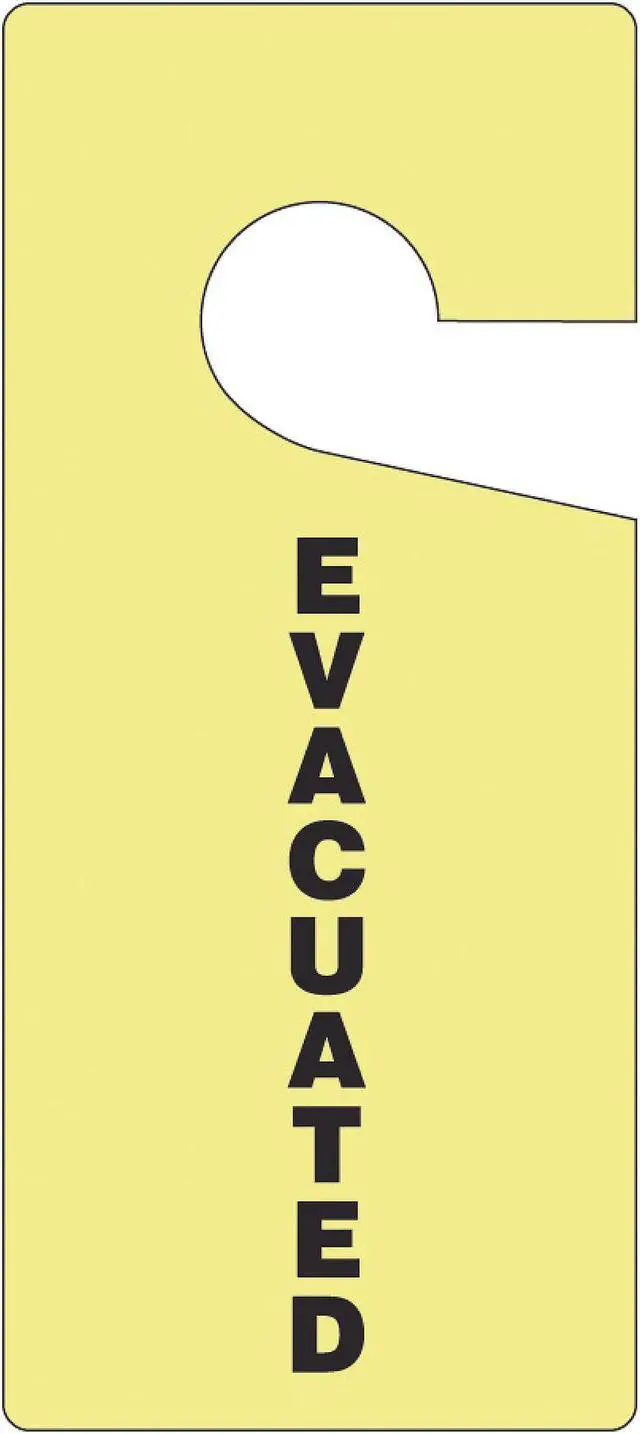Door Knob Hanger Tag, Subject Matter Information, Sign Legend Evacuated, Legend Same on Both Sides Yes, Sign Header No Header, Sign Header Background Color Green, Shape Rectangular, Safety Tag Legend - Back Side Evacuated, Sign Header -Back Side Evacuated, Package Quantity 10. This item has been restricted from sale in the following state (s): []