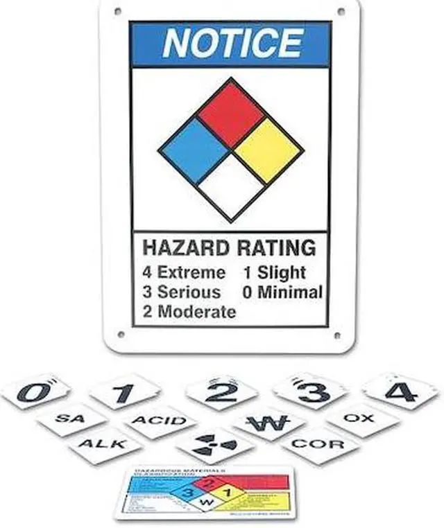 California Proposition 65: This product contains a chemical known to the State of California to cause birth defects or other reproductive harm. NFPA Sign, NFPA Diamond Hazard Rating 4 Extreme, 3 Serious, 2 Moderate, 1 Slight, 0 Minimal, Aluminum, Height 10 in, Width 7 in, Header Notice, Legend Style Symbol and Text, Language English, Sign Shape Rectangle. This item has been restricted from sale in the following state (s): []