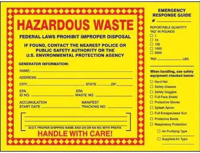 Hazardous Waste Labels, Language English, Handling Label/Placard Type Waste, DOT/UN Product Form Label, Message Federal Laws Prohibit Improper Disposal If Found, Contact The Nearest Police or Public Safety Authority or The U. S. Environmental Protection Agency, Generator