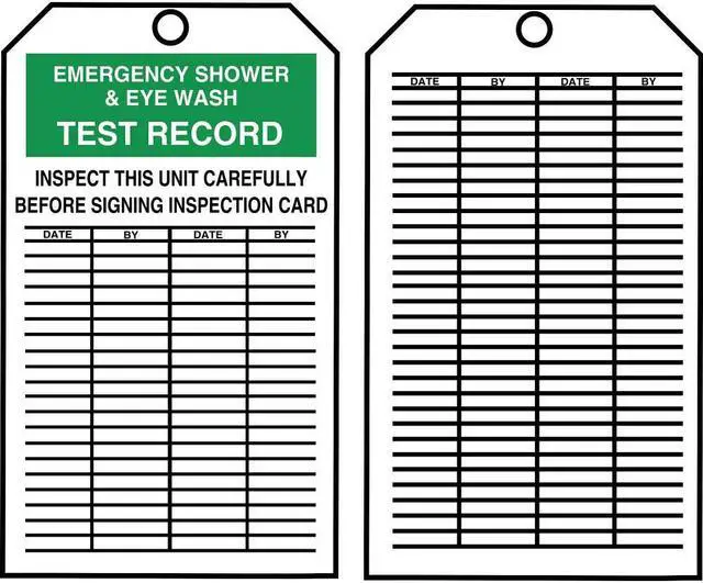 ZORO SELECT 43Z218 Tag, Emergency Shower & Eye Wash Test, Cardstock, 6 1/4 in H