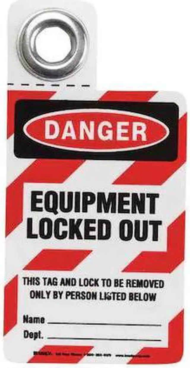 Tag, Material Vinyl, Legend Equipment Locked Out, Height 4 in, Width 2 in, Hole Size 3/8 in, Header Danger, Legend Color Black, Background Color Red, White, Legend Style Text, Write on Surface Yes. This item has been restricted from sale in the following state (s): []