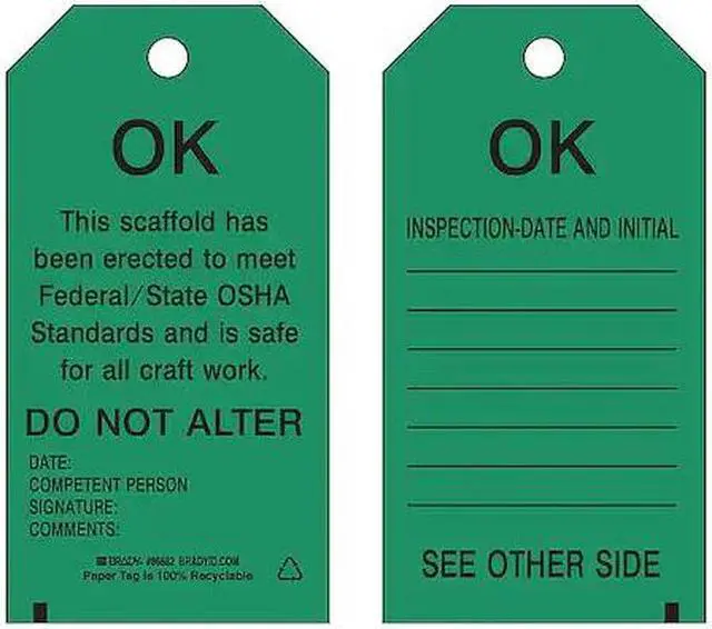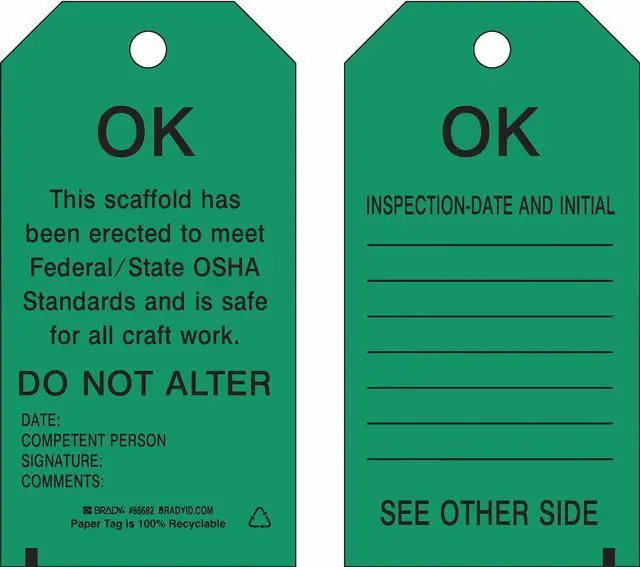 Scaffold OK Tag, Subject Matter Fall Protection, Sign Legend This Scaffold Has Been Erected To Meet Federal/State Osha Standards And Is Safe For All Craft Work.
