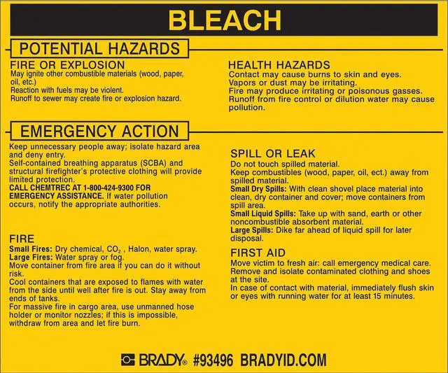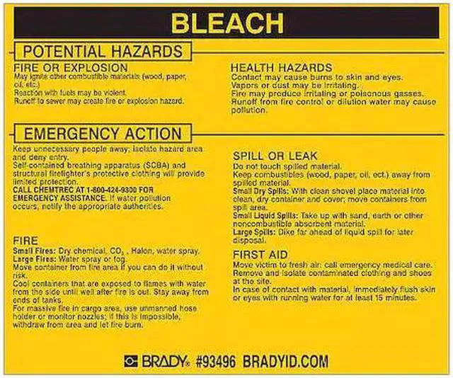 BRADY 93496 Chemical Label,3-3/4inHx4-1/2inW,PK25
