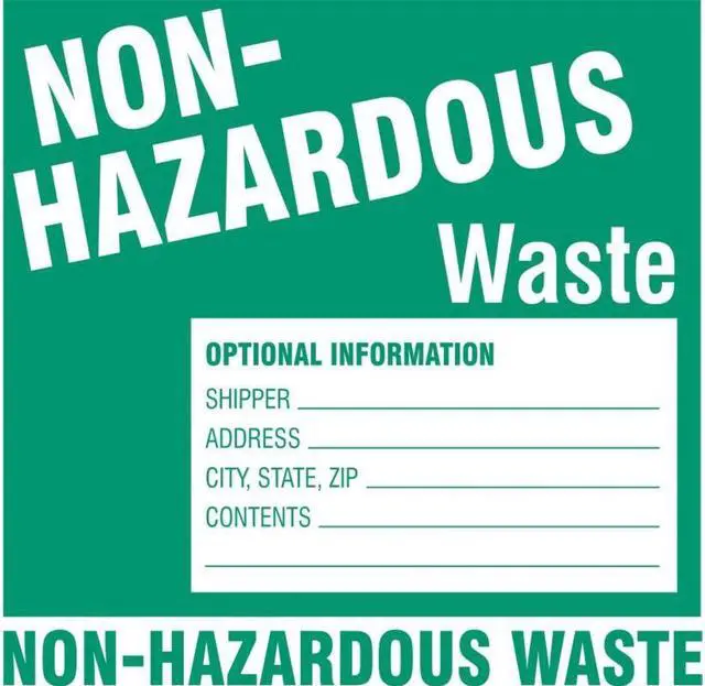 DOT Handling Label, Language English, Handling Label/Placard Type Waste, DOT/UN Product Form Label, Message Non-Hazardous Waste; Optional Information, Label Width 6 in, Label Height 6 in, Material Paper, Labels per Roll 100, Background Color White, Package Quantity 100. This item has been restricted from sale in the following state (s): []