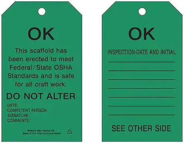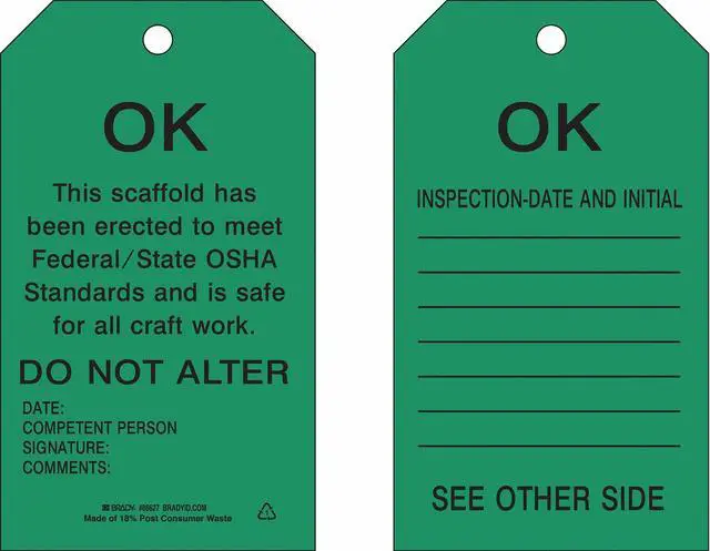 Scaffold OK Tag, Subject Matter Fall Protection, Sign Legend This Scaffold Has Been Erected To Meet Federal/State Osha Standards And Is Safe For All Craft Work.