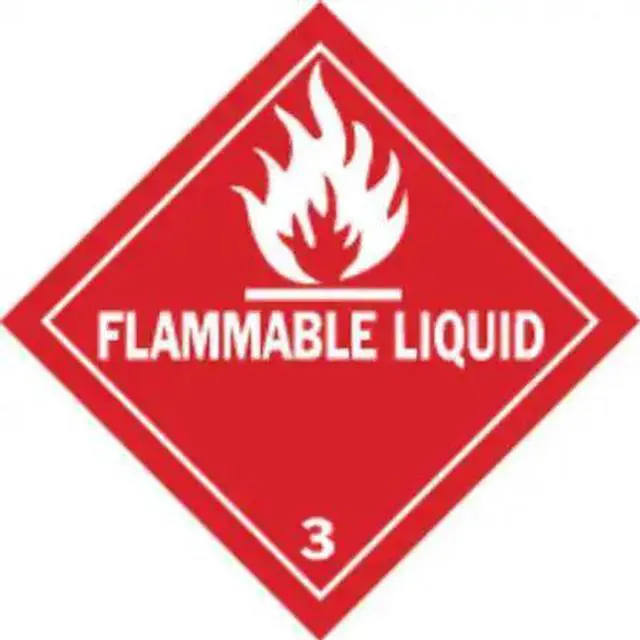 DOT Container Label, Language English, Container Label/Placard Type Hazardous Class, Hazard Class Class 3 (Flammable Liquids), DOT/UN Product Form Label, Message Flammable Liquid 3, Label Width 4 in, Label Height 4 in, Material Vinyl, Package Quantity 500. This item has been restricted from sale in the following state (s): []