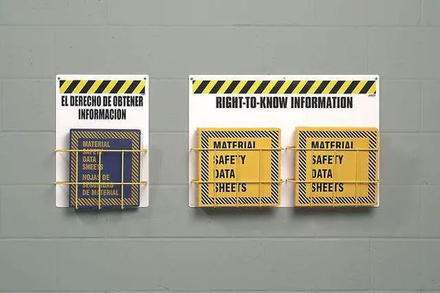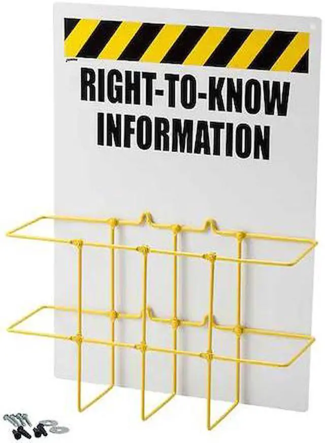 Right-To-Know Center, Mounting Type Wall, Language English, Legend Right-To-Know Information, Height 20 in, Width 14 in, Depth 5 in, Station Mounting Type Wire Rack with Sign, Station Sign Color White, Station Holder Material PVC Coated Steel, Binder Chain Included No