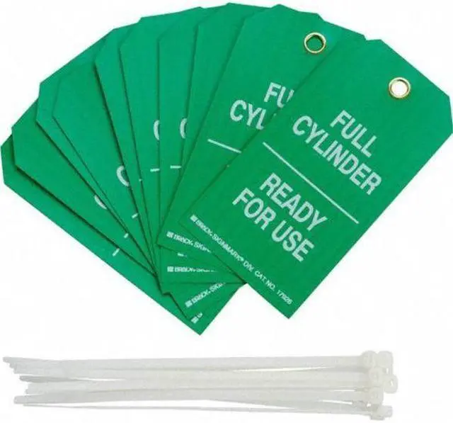 Cylinder Status Tag, Subject Matter Lockout Tagout, Sign Legend Full Cylinder Ready For Use, Legend Same on Both Sides Yes, Sign Header No Header, Shape Rectangular, Safety Tag Legend - Back Side Full Cylinder Ready For Use, Sign Header -Back Side No Header, Package Quantity 10. This item has been restricted from sale in the following state (s): []