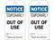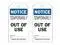 Date:, Height 7 in, Width 4 in, Hole Size 3/8 in, Header Notice, Legend Color White, Background Color White, Language English, Shape Rectangular, Indoor/Outdoor Usage Indoor/Outdoor, Write on Surface Yes, Reverse Side Legend Temporarily Out Of Use Signed By: