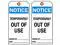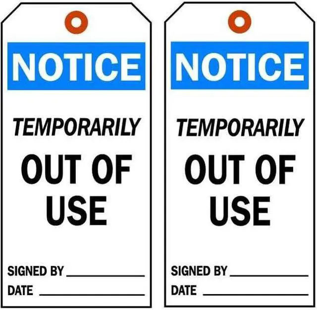 Notice Tag, Material Polyester, Legend Temporarily Out Of Use Signed By:
