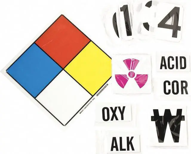 NFPA Sign, NFPA Diamond Placard With Numbers And Symbols, Fiberglass, Height 11 in, Width 11 in, Header No Header, Legend Style Symbol and Text, Language English, Mounting Style With Mounting Holes, Thickness 0.1 in, Sign Shape Square, Operating Temp. Range -40 Degrees to 194 Degrees F, Retroreflective Grade Not Retroreflective. This item has been restricted from sale in the following state (s): []