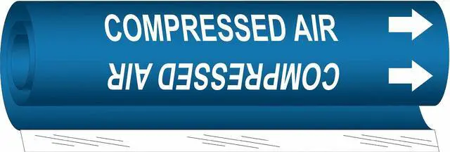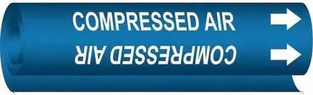 Pipe Marker, Pipe Marker Mounting Style Wrap-Around Pipe Marker, Pipe Marker Legend Compressed Air, Legend Text Color White, Character Height 1 1/4 in, Background Color Blue, With or Without Arrows With. This item has been restricted from sale in the following state (s): []