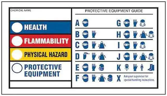 HMIG Self-Laminating Label, Material Polyester, Legend Protective Equipment Guide, Height 3 in, Width 5 in, Metal Detectable No, Write on Surface Yes, Shape Rectangle, Laminated Yes, Language English, No. of Labels 25, Package Quantity 25. This item has been restricted from sale in the following state (s): []