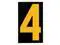 Number Label, Character 4, Character Height 1 in, Overall Height 1 1/2 in, Overall Width 1 in, Character Type Numbers, Material Retroreflective Sheeting, Background Color Black, Retroreflective Grade Engineer, Markers per Card 1, Number of Cards 25, Character Width 1 in, Standards ASTM D 2979; Fed. Spec. L-S-300 (Class 1); Fed. Spec. L-S-300 (Class 4), Character Color Yellow, Package Type Sheet, Die Cut Yes, Package Quantity 25. This item has been restricted from sale in the following state (s): []