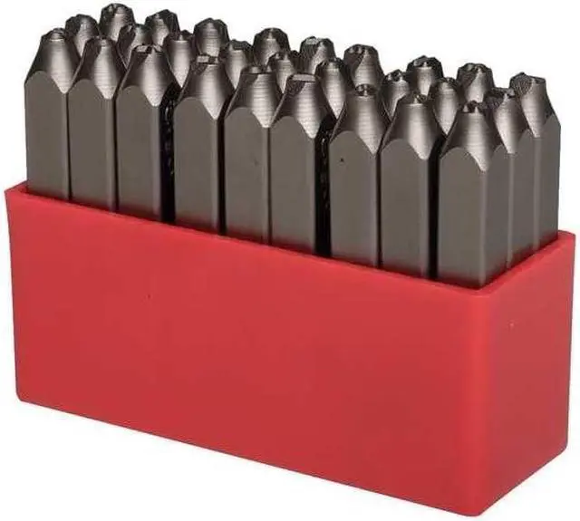 Letter Set, Character Height 1/2 In., Shank Length 4 In., Shank Size Square 3/4 In., Material Steel, Case Material Plastic, Impression Letter Type Low Stress Round Face, Includes (27) Pieces - A thru Z and Ampersand, Standards Government Specifications for Minimum Stress Marking. This item has been restricted from sale in the following state (s): []