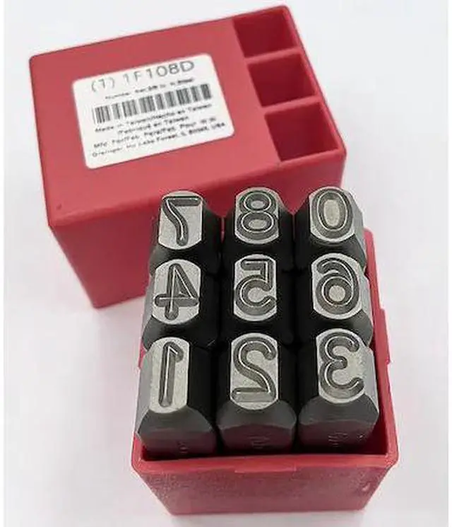 California Proposition 65: This product contains a chemical known to the State of California to cause birth defects or other reproductive harm. Hand Stamp Kit, Character Height 3/8 in, Character Type Set Number Set, Characters Included 0 to 8 (With 6 Serving as 9), Duty Heavy, For Maximum Surface Hardness 62 HRC, For Shank Diameter 5/8 in, Holder Length Not Applicable, Holder Shank Size Not Applicable, Holder Width Not Applicable, Impression Character Style Gothic, Includes Holder No, Letter Casing Uppercase, Maximum Characters per Line Not Applicable, Product Type Hand Stamp Kit, Replacement Holder Mfr. Model Number Not Applicable. This item has been restricted from sale in the following state (s): []