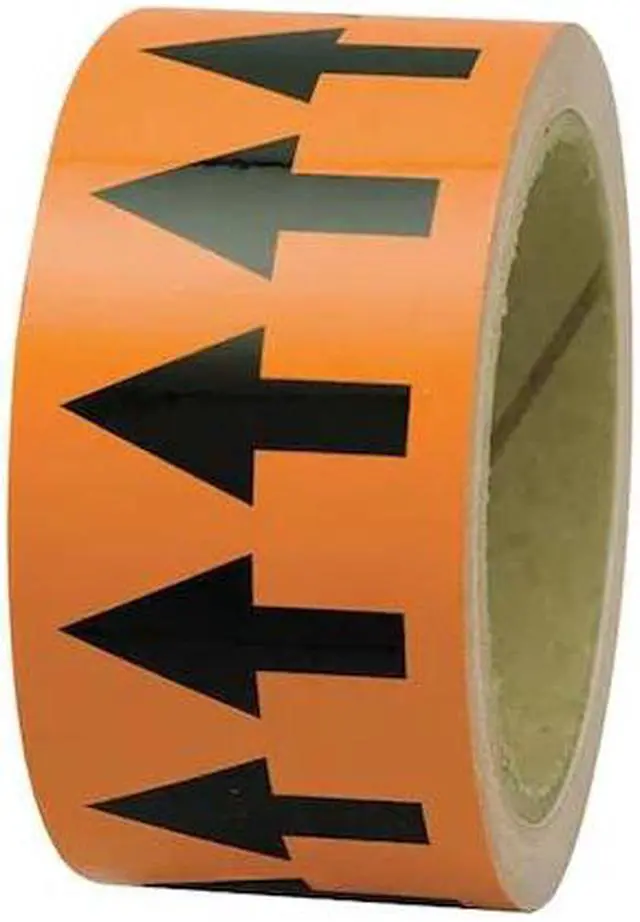Arrow Tape, Pipe Marker Legend Arrow, Legend Text Color Black, Background Color Orange, Pipe Marker Mounting Style Adhesive Pipe Marker, Self-Adhesive Pipe Marker Format Roll Form, Continuous, Length 1, 296 in, Width 4 in, Thickness 0.004 in, Roll Length 108 ft. This item has been restricted from sale in the following state (s): []