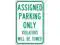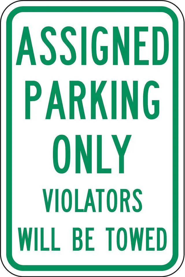 Authorized & Assigned Parking Sign, Height 18 in, Width 12 in, Sign Material Aluminum, Sign Mounting Style Mounting Holes, Printed Language English, Sign Shape Vertical Rectangle. This item has been restricted from sale in the following state (s): []