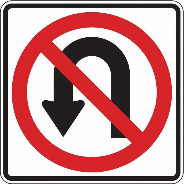 No U-Turn Traffic Sign, Height 24 in, Width 24 in, Sign Material Aluminum, Sign Mounting Style Mounting Holes, Printed Language No Text, Sign Shape Square. This item has been restricted from sale in the following state (s): []