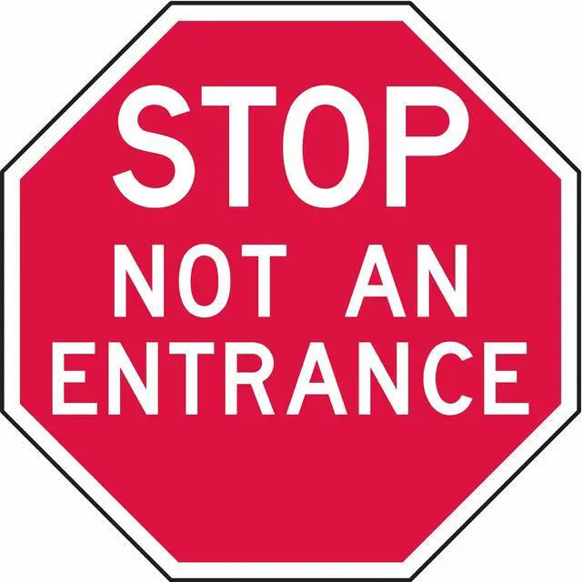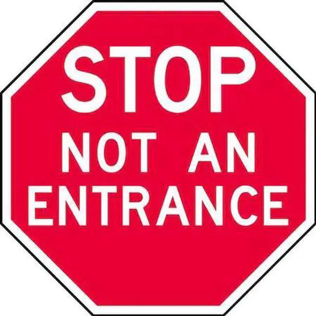 Entrance Sign, Octagon, Number of Printed Sides 1, English, Sign Format Other Format, Sign Legend Stop Not An Entrance, Sign Legend Background Color Red, Sign Legend Style Text. This item has been restricted from sale in the following state (s): []