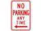 No Parking Any Time Parking Sign, Height 18 in, Width 12 in, Sign Material Aluminum, Sign Mounting Style Mounting Holes, Printed Language English, Sign Shape Vertical Rectangle. This item has been restricted from sale in the following state (s): []