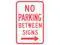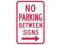 No Parking Between Parking Sign, Height 18 in, Width 12 in, Sign Material Aluminum, Sign Mounting Style Mounting Holes, Printed Language English, Sign Shape Vertical Rectangle. This item has been restricted from sale in the following state (s): []