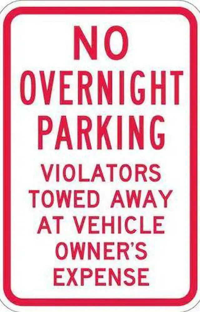 No Overnight Parking Sign, Height 18 in, Width 12 in, Sign Material Aluminum, Sign Mounting Style Mounting Holes, Printed Language English, Sign Shape Vertical Rectangle. This item has been restricted from sale in the following state (s): []