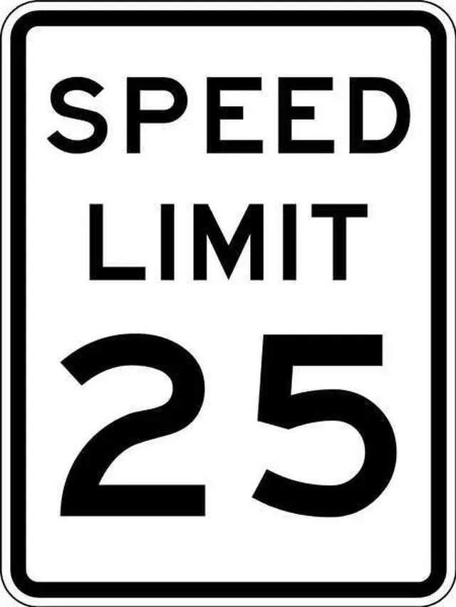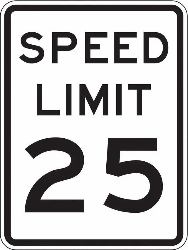 Speed Limit 25 Traffic Sign, Height 24 in, Width 18 in, Sign Material Aluminum, Sign Mounting Style Mounting Holes, Printed Language English, Sign Shape Vertical Rectangle. This item has been restricted from sale in the following state (s): []