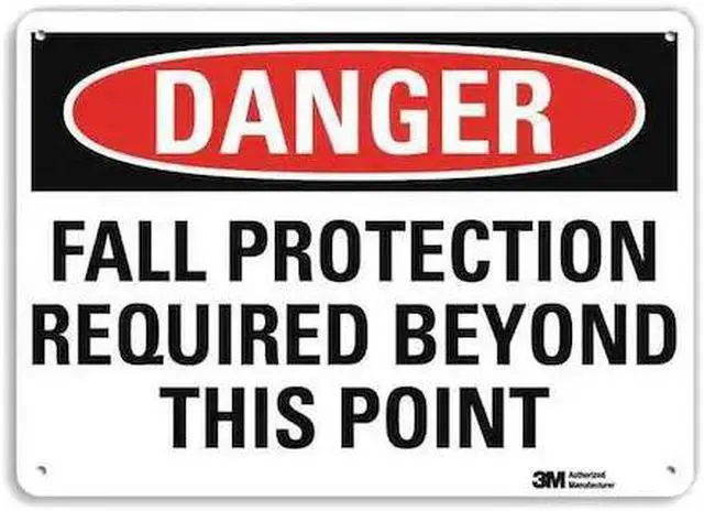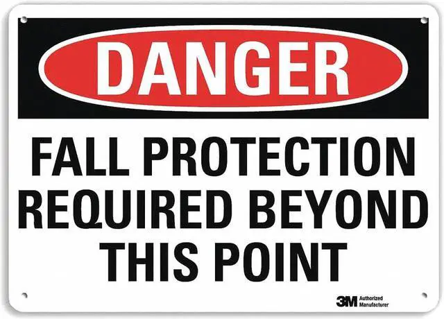 Danger Sign, Horizontal Rectangle, Number of Printed Sides 1, English, Sign Format Traditional OSHA, Sign Legend Fall Protection Required Beyond This Point, Sign Legend Background Color White, Sign Legend Style Text. This item has been restricted from sale in the following state (s): []