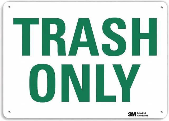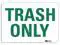 Facility Sign, Horizontal Rectangle, Number of Printed Sides 1, English, Sign Legend Trash Only, Sign Legend Background Color White, Sign Legend Style Text. This item has been restricted from sale in the following state (s): []