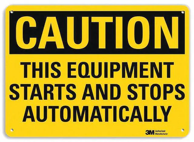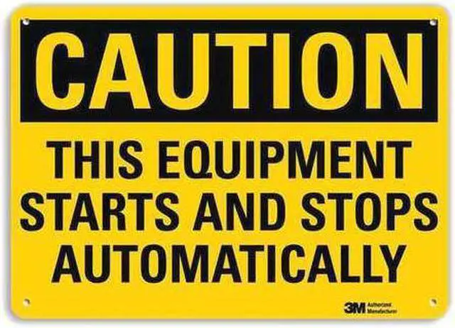Caution Sign, Vertical Rectangle, Number of Printed Sides 1, English, Sign Format Traditional OSHA, Sign Legend This Equipment Starts And Stops Automatically, Sign Legend Background Color Yellow, Sign Legend Style Text. This item has been restricted from sale in the following state (s): []