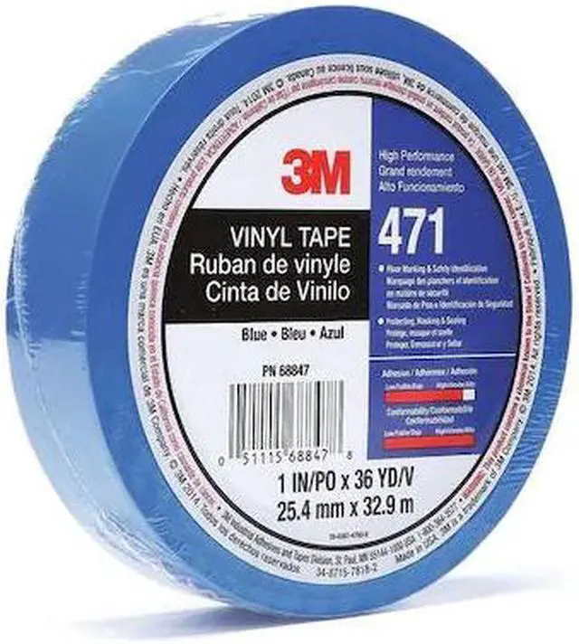 Floor Marking Tape, Continuous Roll, Solid, Blue, 1 in, 108 ft, 5.2 mil, Vinyl, 3M (TM), Series 471, Legend No Legend, Glow In The Dark No, Retroreflective Grade Non-Reflective. This item has been restricted from sale in the following state (s): []